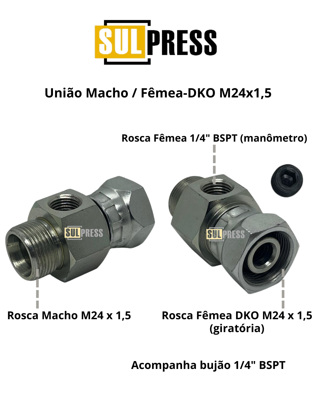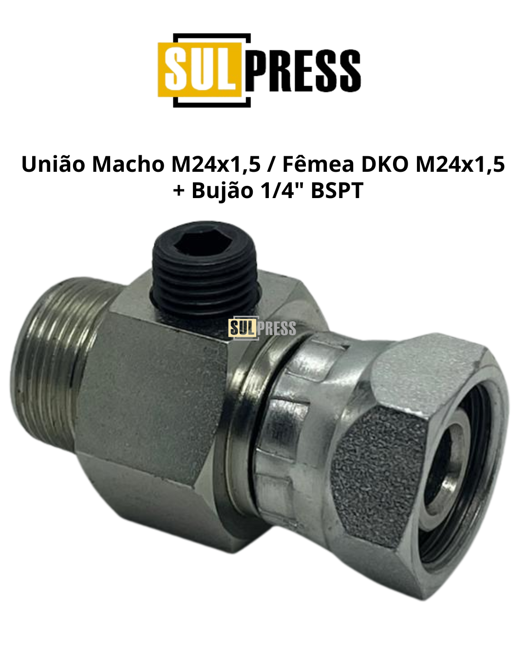União – Conexão – Adaptador Macho / Fêmea DKO M24x1,5 + Bujão 1/4″ BSPT