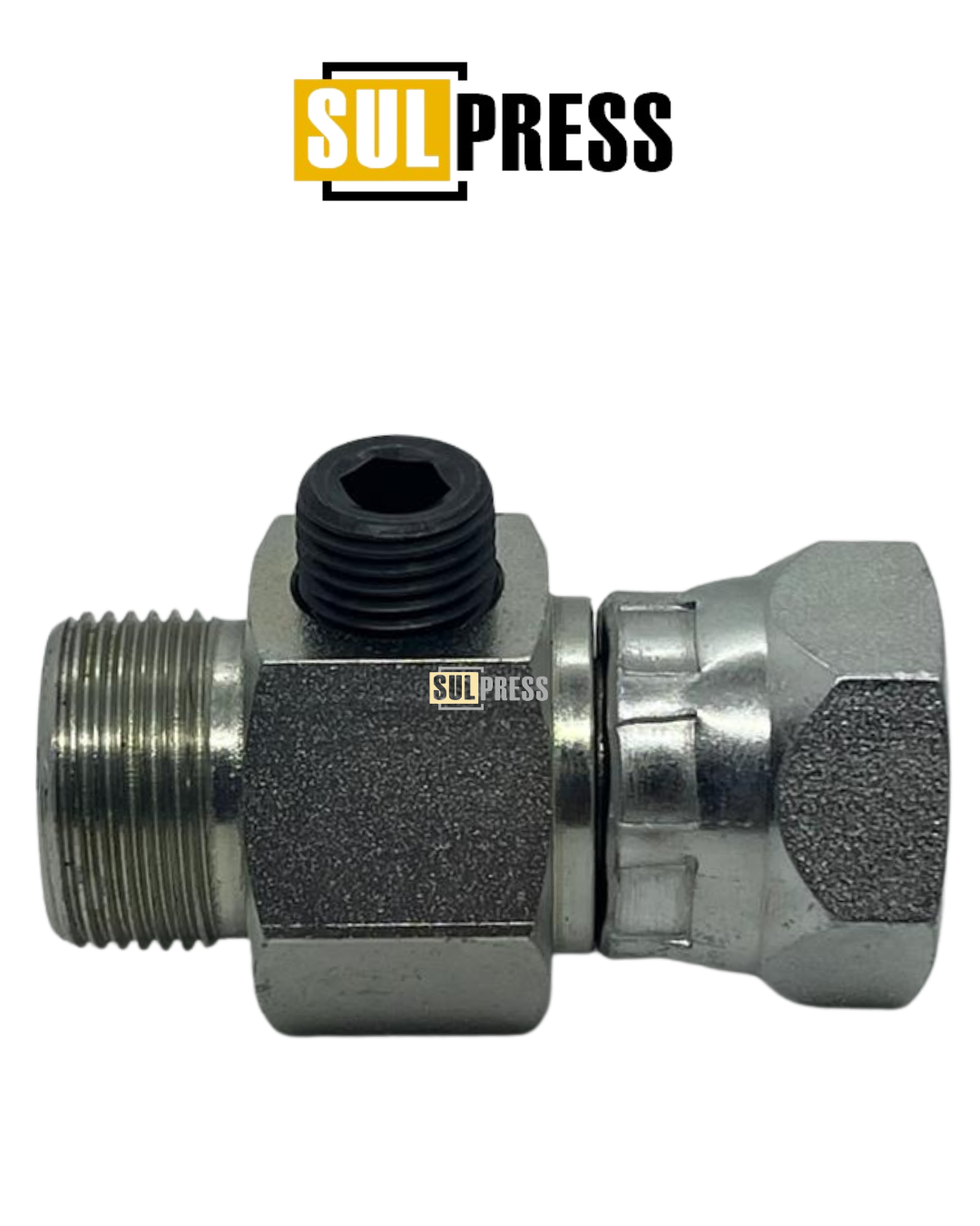União hidráulica roscada, para a medição de pressão em linha em dispositivos, máquinas e circuitos hidráulicos.