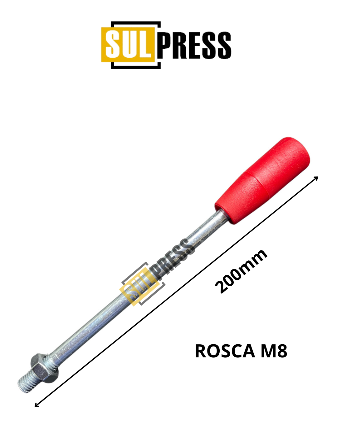 Alavanca de Comando 200mm com Manípulo Vermelho e Rosca M8.