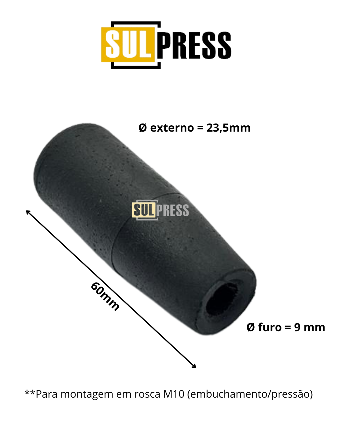 - Montagem: Compatível com rosca M10 / haste de 10 mm – fixação por pressão / embuchamento