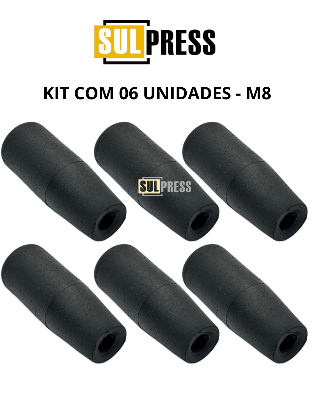 Kit com 06 unidades de Manípulos Pretos para Alavanca M8 / Haste 8mm.
