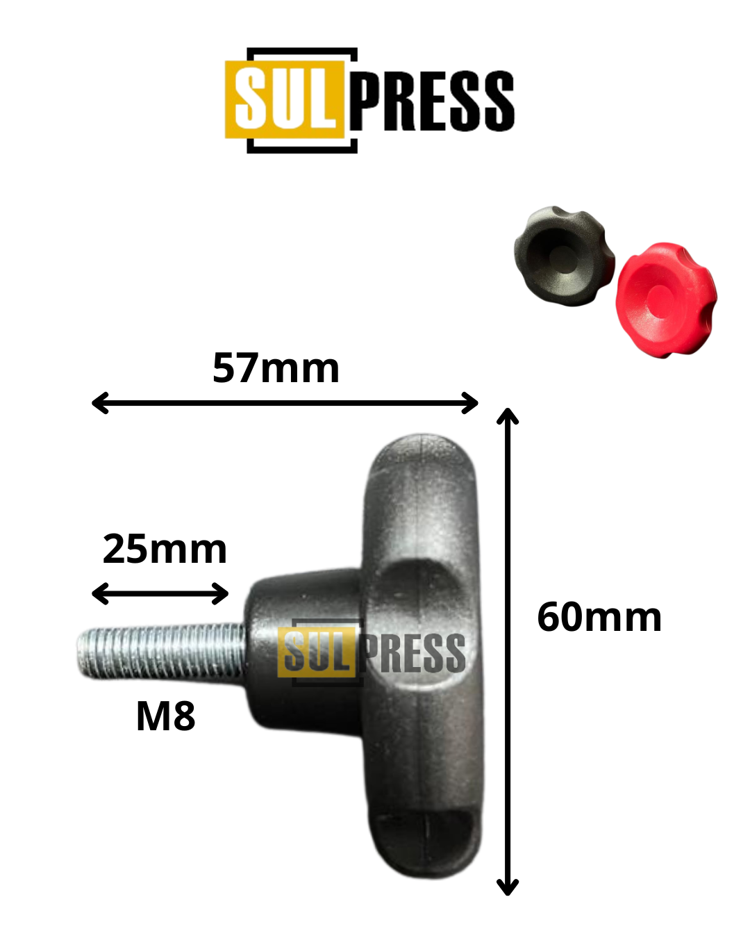 Manopla de Acionamento para Dispositivos e Máquinas – Rosca M8, Cor Preta.
