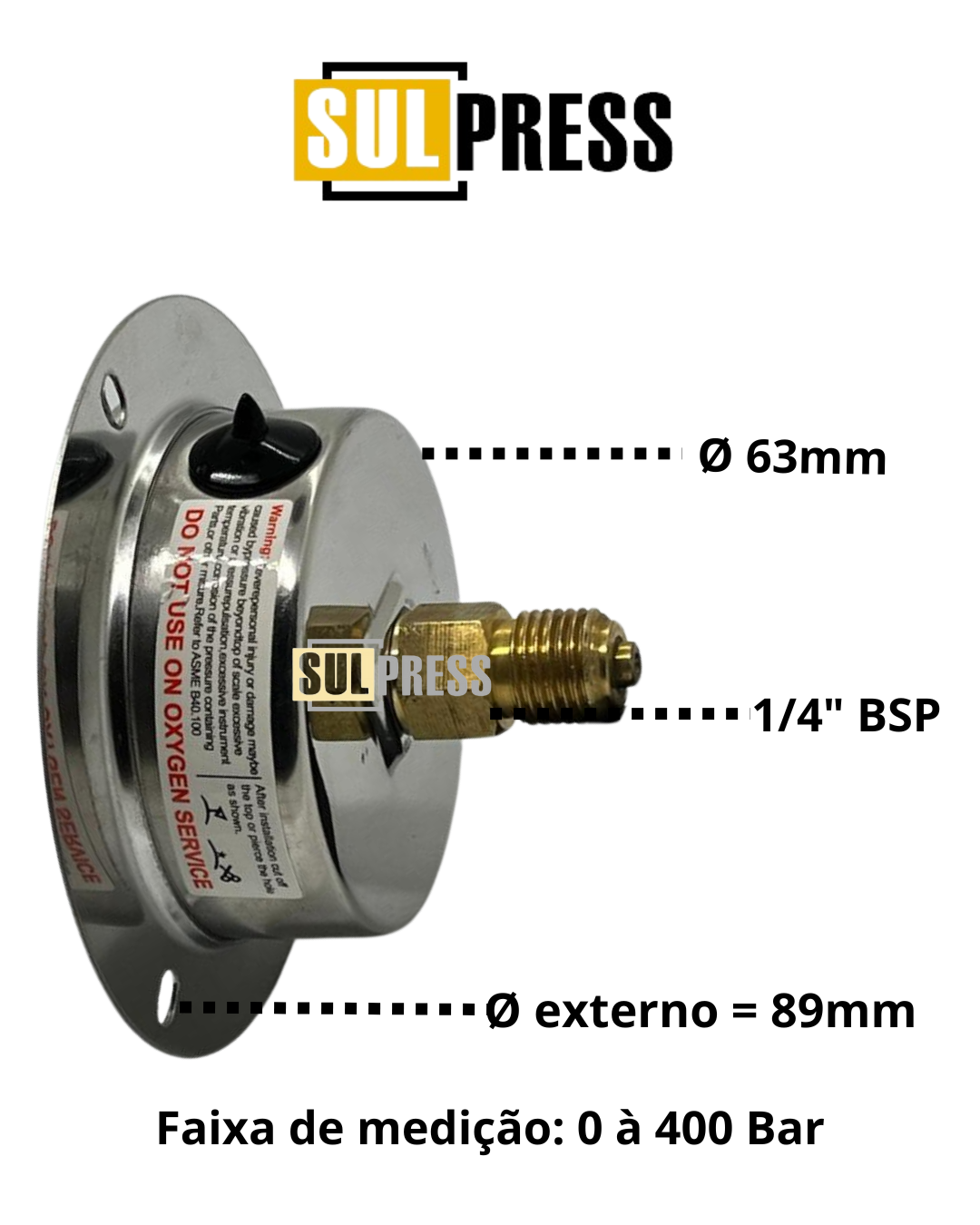 - Interno: Glicerina para absorção de picos de pressão, garantindo maior estabilidade e precisão nas medições.
