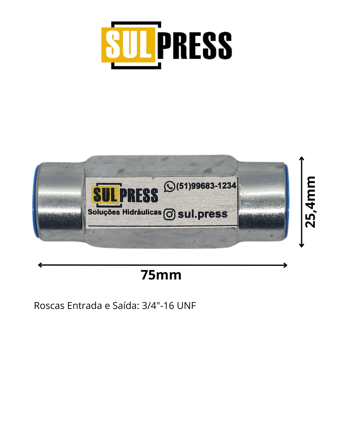 - Rosca: 3/4″-16 UNF (entrada e saída).
