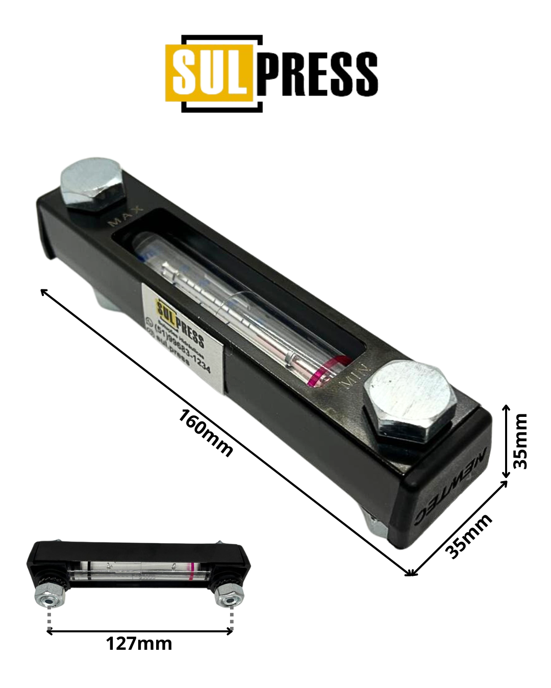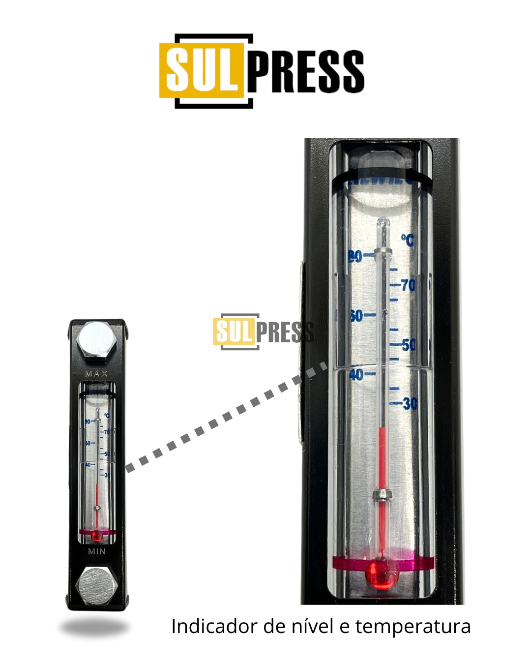 Visor de Nível de Óleo com Indicador de Temperatura – Newtec – 160mm